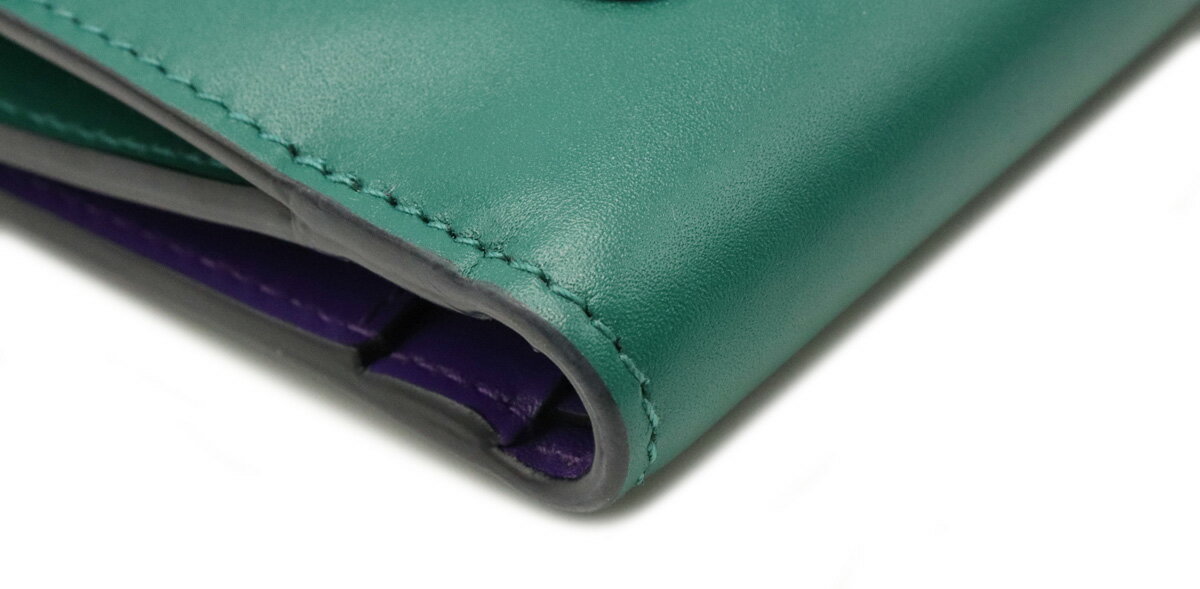 商品詳細 サイズ W14.5cm H10cm材質 レザーカラー グリーン/パープル仕様 札入れ2、小銭入れ1、カードポケット7、クリアポケット1、その他ポケット5付属品 外箱 コンディション 程度 中古A 外側 若干のスレ、わずかなシワ、小銭入れ膨らみ、内側汚れ内側 一部カード跡、札入れ内薄スレ、シワ金具 目立つダメージなし特記事項 なし コメント 大きなダメージ等なく、全体的に状態の良いお品物でございます。