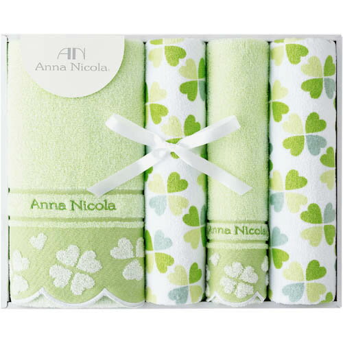 ANNA NICOLA (アンナ・ニコラ) パステルクローバー バスタオル1枚・フェイスタオル3枚 (グリーン) 【ギフト 引越しのご挨拶 出産内祝 結婚内祝 快気祝 法事引出物 香典返し お返し 各種内祝 景品】