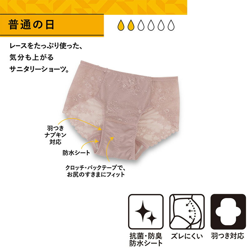 サニタリーショーツ アツギ レース 生理用ショーツ M・L (サニタリー 羽つき ウイング 防水シート ショーツ 普通の日 肌着 下着 婦人肌着 インナー ランジェリー)